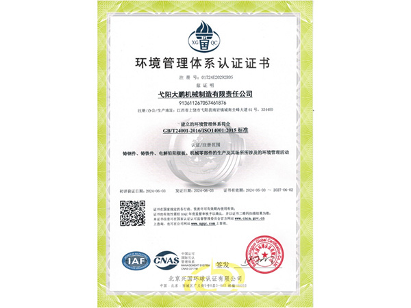 • 09-28弋陽大鵬機械制造有限責任公司成功取得規范